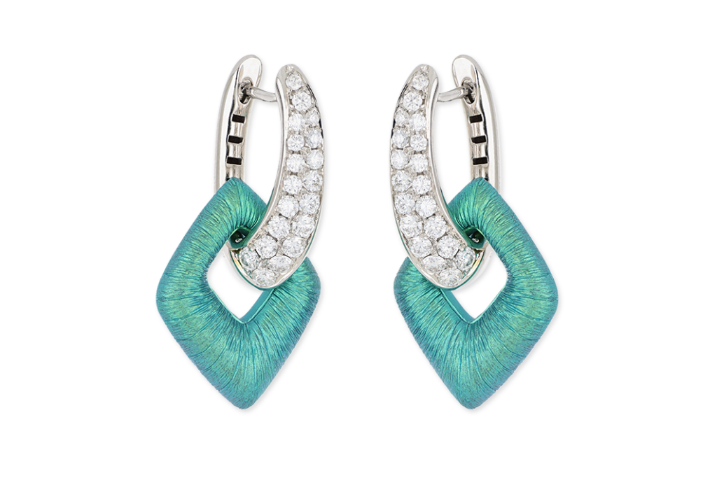 Fascinating creativity for an unmistakable icon of the Maison J’OR style. Titanium earrings with a dynamic and sparkling expression of modernity that captures precious moments of light and celebrates the extraordinary connection between technique and elegance.